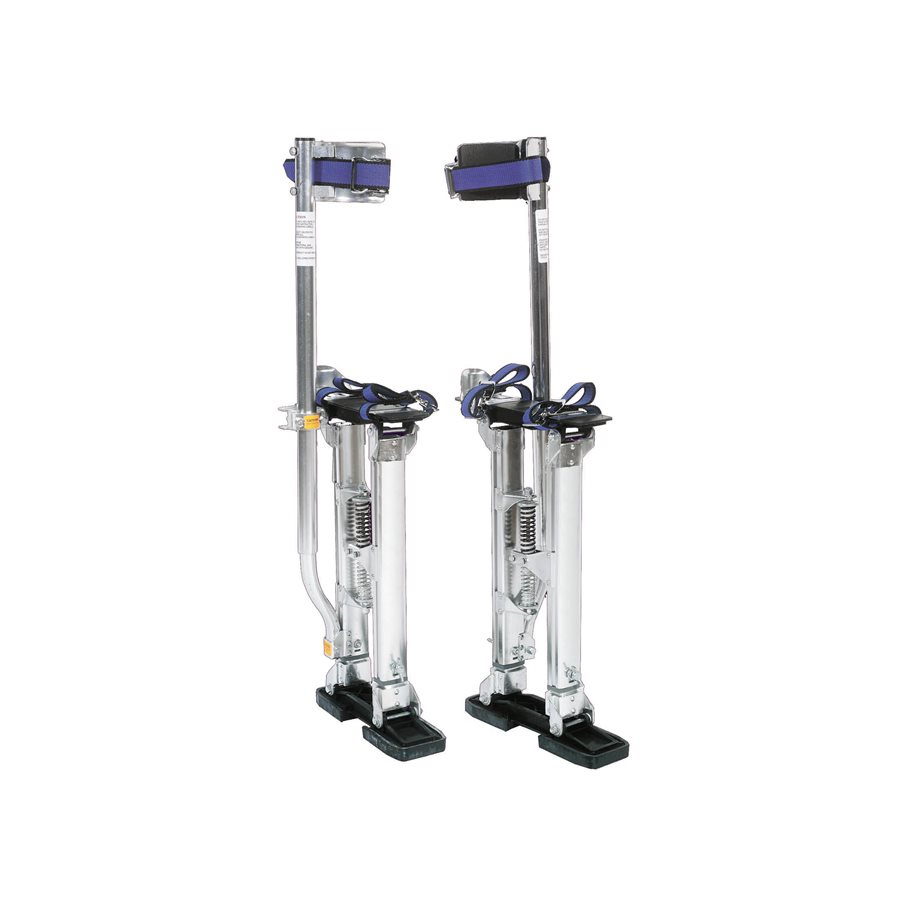Zancos de trabajo para obras resistentes y ligeras. Adecuado para todos los modelos de calzado, los zancos de construcción son adecuados para pintores, instaladores, yeseros. Equipados con amortiguadores y arnés, los zancos de construcción tienen una capacidad máxima de 120 kg y altura regulable.